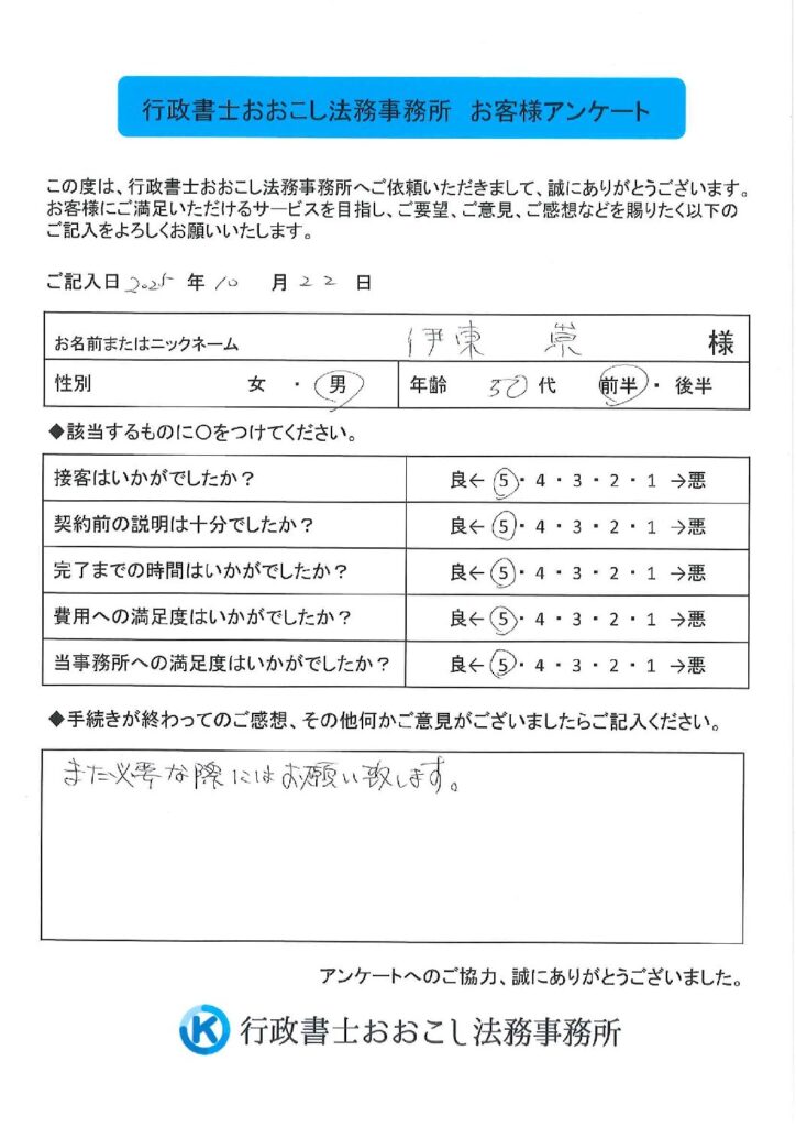当事務所をご利用いただいたお客様のご感想やご意見をいただき、サービス向上に役立てています。